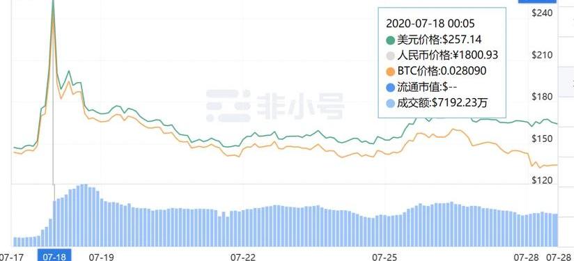 「眼看著DOT從120多U漲到255U,漲勢既誘人又惑亂心智,不過想到5月份時候75U的場外價格都沒入手,還是克制住了。」這是7月17日17:00波卡原生代幣DOT上線火幣時資深韭菜林淼的內心起伏。波卡原名Polkadot,是一個由多條區塊鏈,異構組成的區塊鏈集合,主要的目的是將現在各自獨立的區塊鏈連接起來,通過Polkadot,不同區塊鏈之間可以進行通信和數據的傳遞。DOT作為波卡原生通證,在Polkadot中發揮四個關鍵功能,即為網絡提供管理,運行網絡,通過綁定DOT來創建平行鏈以及跨平行鏈傳遞消息的費用。展開來講,第一個功能是使持有人有權完成對平臺的治理控制,主要包括確定網絡的費用,拍賣動態和添加平行鏈的時間表以及特殊事件,例如Polkadot平臺的升級和修復;第二個功能是支持Polkadot的共識機制,持有者可以通過抵押所持有DOT來執行這些功能;第三個功能是通過綁定通證來添加新的平行鏈;第四個功能則是向驗證人節點支付費用,以傳送跨鏈的消息。當然,這些功能需要階段性展開,并沒有對當前的二級市場價格產生直接影響。所以,DOT首發后的行情高開趨勢僅維持到當日的24時前,此后則是持續低走,過去兩周單枚價格多在140美金—180美金間徘徊。