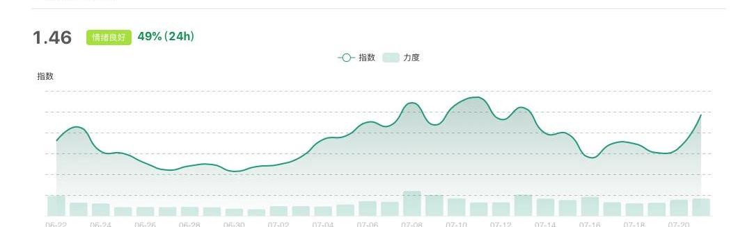 根據標準共識市場情緒指數反映,最新指數為1.46市場情緒良好。受ETH大幅上漲帶動,市場整體轉暖,但成交額方面并未出現明顯增長,市場仍然處于資金較為短缺狀態,資金仍處于抱團拉升狀態。