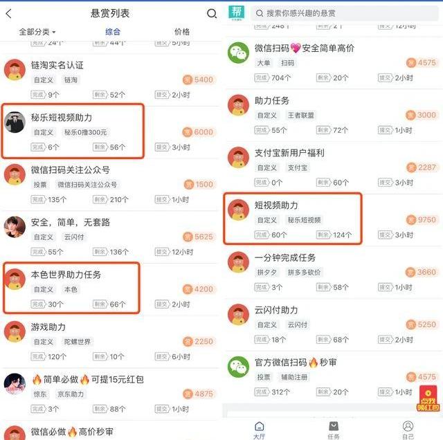 事實上,不止是青團社,包括眾人幫、懸賞貓等在內的多個兼職平臺,都已經成為了幣圈資金盤的推廣渠道。以眾人幫為例,在任務懸賞列表,我們可以看到大量資金盤的助力任務,其中秘樂短視頻尤其多,可見其火爆程度。