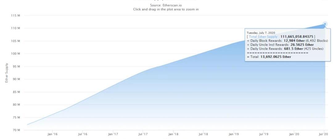 ETH供應量與市值:
