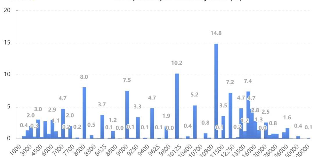 持倉分布如圖所示,次周期權持倉明顯上升,期權價格分布仍然集中在虛值看漲期權上。