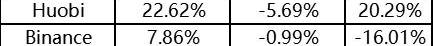 一個明顯的趨勢就是,其用戶比特幣向火幣的流向比例在逐步增加,在第三周已經超過了50%,由于兩家交易所的用戶中,亞洲用戶占比較大,這一趨勢似乎體現出近期交易所巨頭間的階段性格局。我們在這里總結一下,看看6月前三周,三大交易所整體的比特幣流出分布: