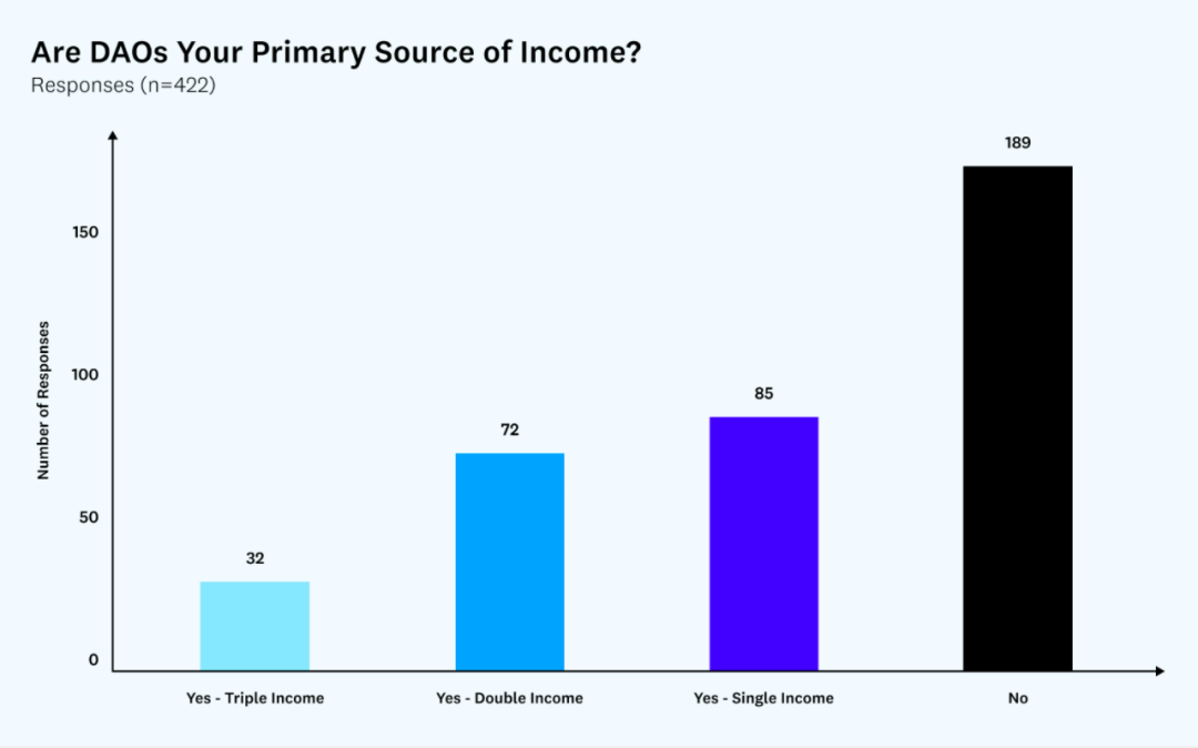 只有當 DAO 成為主流時,X-to-earn 機會才會成為主流。DAO 顯示出很多希望,但它們仍處于早期階段,在實現未來工作之前還有很長的路要走。在最近由 Gitcoin 和 Bankless 對 422 名 DAO 參與者進行的調查中,<45% 的受訪者表示 DAO 是他們的主要收入來源。