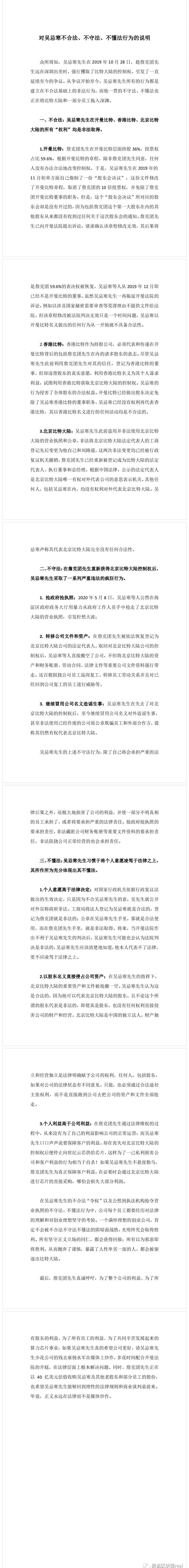 這里有三個問題:第一,40億美金對于吳忌寒來說,是否會認為估值過低,40億是現在的最低估值,也很少有聽說以最低估值進行收購,一般都有一些溢價。如果順利發展,以比特大陸的體量上市達到百億美金估值應該是很輕松的,詹自己也說要在3-5年內做到500億美金估值。第二,詹是否能夠全額收購還是部分收購,比如只是收購到個人持股50%以上,或者只是一個話術。畢竟能拿出10億美金的恐怕只有地方政府或頂級的海外資金。但地方政府由于對礦機行業敏感,拿出的可能性并不大。前文提到的瑞銀更多扮演一個承銷商角色,不太可能直接拿出數億美金注資。第三,退一步說,真有10億美金注資,也必定附有極其嚴苛的對賭條款,詹是否能夠接受。之前比特大陸pre-ipo融資時簽署了5年內上市的對賭條款,如果無法上市將要償還3.4億美金的融資+利息。因此,最終無論誰拿回控制權,都會面臨急迫的上市壓力。好在億邦的成功上市,讓比特大陸上市路徑本身應無問題,只是時機的選擇。對于大部分員工來說,盡早結束混亂,公司成功上市獲得收益,應該是最大的渴望。吳忌寒方面聲明: