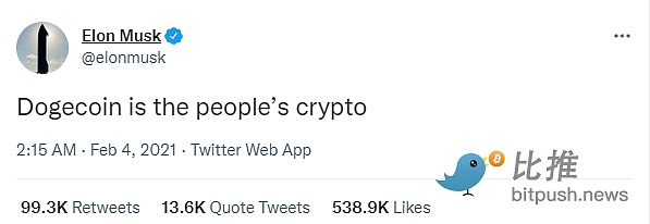 首先,不得不談到狗狗幣和柴犬幣等memecoins的迅速崛起。2021 年初,一個狗狗幣價值 0.5 美分,市值為 6 億美元。在牛市的巔峰時期,狗狗幣的市值幾乎達到1000億美元,每枚代幣的價格為73美分,比年初上漲了146倍。就連全球首富埃隆·馬斯克(Elon Musk)也在推特上全力推廣狗狗幣,甚至稱其為“人民的加密貨幣”。盡管有些人可能認為這對加密貨幣來說是一個巨大的挫折,因為它讓市場看起來像一個笑話,但毫無疑問,狗狗幣以一種比特幣從未有過的方式吸引了公眾的注意。