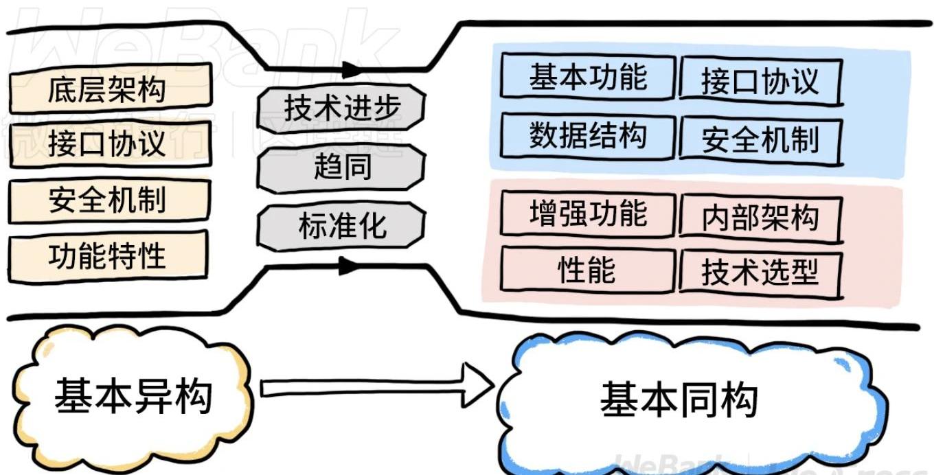 本文從聯盟鏈角度分析。當下,聯盟鏈底層平臺的數量已經雙手都數不過來,這些平臺或多或少存在獨有的特性,且各自落地了多領域應用。這些基于同構平臺,或基于異構平臺構建的應用之間,要實現互聯互通,就會面臨一些技術上的挑戰。然而,區塊鏈作為構建和傳遞信任的機器,是基礎設施層面的技術,而基礎設施就如同網絡協議、存儲協議一樣,最終都將走向趨同的標準化方向。因而,聯盟鏈當前狀態是發展中的一個過渡狀態,不是最終穩定態。隨著技術進一步發展,聯盟鏈底層平臺在基本功能、協議、接口、數據、安全機制等多方面會日漸趨同,朝標準化方向演進,但在增強功能、內部架構、性能以及技術選型等方面,仍然會呈現異彩紛呈的形態。這也符合“合久必分、分久必合”的規律,只有走向基本同構,才能進一步釋放聯盟鏈的活力,進一步推動聯盟鏈應用的發展。