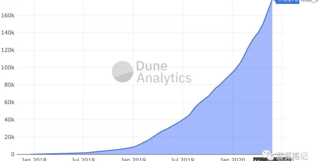5.如今一共有17.8萬DeFi用戶,而僅僅在5個月以前才9萬用戶,這表明以太坊的最大用例開始要起飛了嗎?