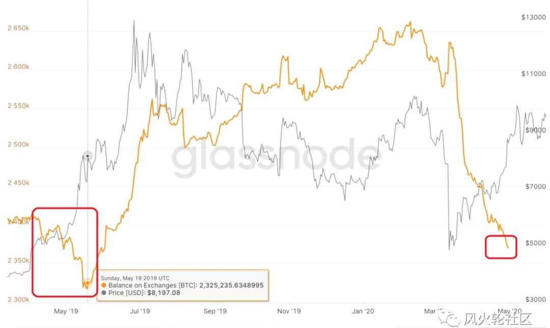 對此,一個比較直覺的認知是,有holder或者鯨魚在買買提,貌似最近也有相關數據表明比特地址中的長期hold持倉是有所增加,而交易所倉位下降,某種角度,如果不太較真的來說,也意味著即時性的可拋售量在降低。總之,利好。但真的是這樣嗎?今天我們就來探究下。如果說作為看漲信號,到也還真能刻舟求劍,下圖是glassnode提供的交易所總持倉量變化: