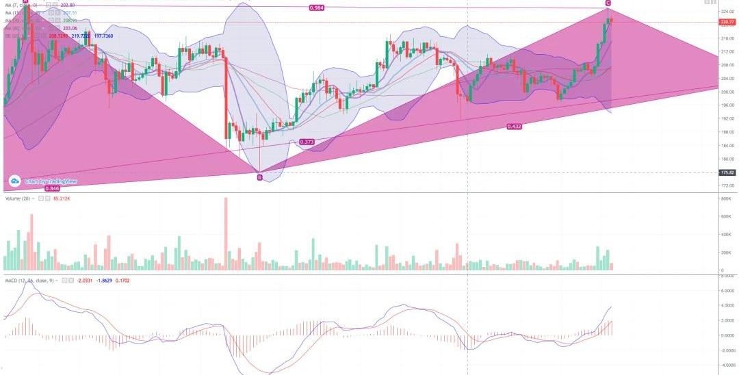 ETH:ETH若突破$230,則ETH有空轉多,重點關注ETH是否可以放量突破$230壓力位。