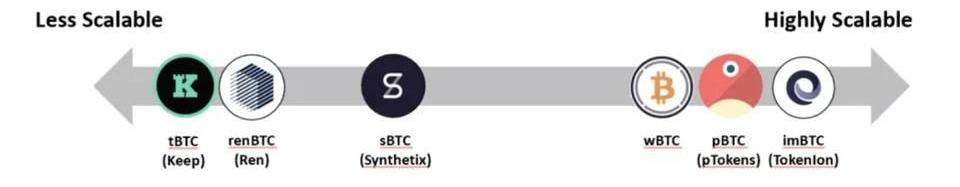 這是區塊鏈投資人AndrewKang寫的一篇科普性文章,目前大多數DeFi應用集中于以太坊,底層區塊鏈足夠龐大的市值才能夠支撐上層經濟的活躍,比特幣作為市值最大的資產,目前出現了越來越多將比特幣整合進DeFi的解決方案,Andrew對比了現有的主流解決方案,包括:imBTC、wBTC、pBTC、renBTC、sBTC、tBTC。實際上,我們發現其可擴容性與去中心化程度呈現負相關。這種負相關主要是因為去中心化程度越高,其隱性成本越高。在兩個區塊鏈網絡直接維護橋接,要求一種新的安全模式來確保橋接得到適當維護。維護這種橋接的成本需要被一方或己方埋單,比如鑄幣商、驗證人、持幣者等等,隨之會在錨定產品中引發各方更多的摩擦。
