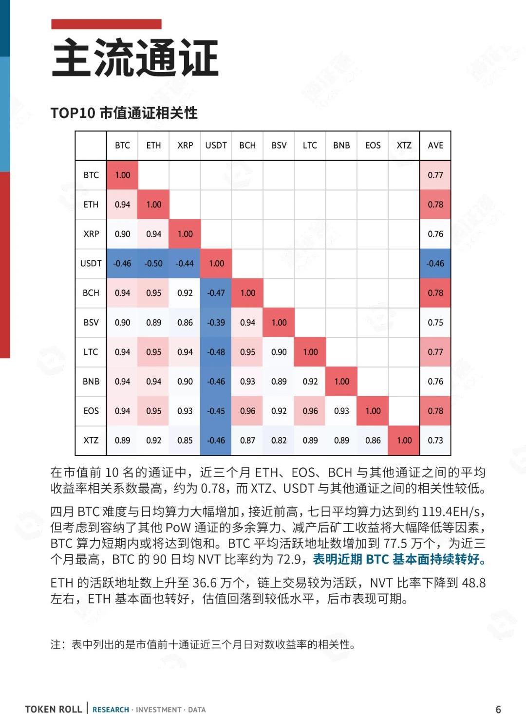 XRP/HKD-0.54%截至2020年5月5日,全球數字通證總市值為2550.72億美元,相比期初上漲672.4億美元,漲幅為35.8%。四月日均成交額為1338億美元,較上月下降173億美元,跌幅為11.4%。2020年4月16日,央行DC/EP在農業銀行、中國銀行的客戶端試運行。蘇州相城區將首先進行DC/EP試點,部分公務員的交通補貼將以交通補貼的形式發放。DC/EP是由央行發行、國家信用支持的法定數字通證,是國家法幣的數字化形式。央行DC/EP的發行,能夠提升貨幣政策效率、促進人民幣國際化、捍衛國家數字金融主權。本月,通證通編制的20個BICS二級行業指數全面上漲。其中供應鏈行業指數漲幅達到96.9%,項目服務行業指數達到57.9%。而T10、T10X指數僅上漲34.8%、34.9%,落后于BTC以及大部分行業指數。四月BTC難度與日均算力大幅增加,接近前高,七日平均算力達到約119.4EH/s,但考慮到容納了其他PoW通證的多余算力、減產后礦工收益將大幅降低等因素,BTC算力短期內或將達到飽和。BTC平均活躍地址數增加到77.5萬個,為近三個月最高,BTC的90日均NVT比率約為72.9,表明近期BTC基本面持續轉好。