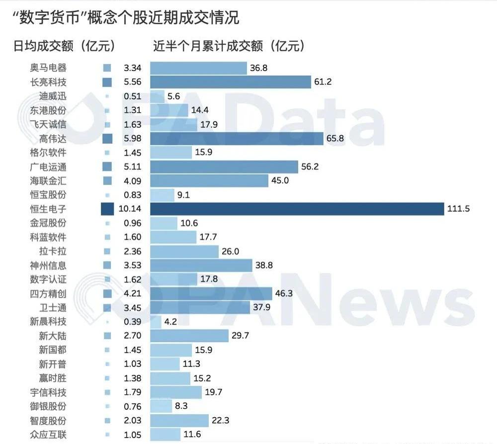 分析師|Carol編輯|畢彤彤出品|PANews4月15日,農業銀行App內測數字貨幣DC/EP的界面在網上流傳,界面上顯示的功能包括掃碼支付、碰一碰、DC兌換查詢和錢包管理掛靠等。隨后,中國銀行也傳出數字貨幣內測消息。雖然央行數字貨幣研究所已經表示,網傳DC/EP信息為技術研發過程中的測試內容,并不意味著數字人民幣正式落地發行。但這并不妨礙資本市場追捧數字貨幣。根據同花順的數據,數字貨幣內測的消息不脛而走后,4月16日,數字貨幣概念指數放量大漲6.90%,此后略有回調。而實際上,這一輪“數字貨幣”概念股的行情啟動于本月初。4月3日,央行召開2020年全國貨幣金銀和安全保衛工作電視電話會議,會議要求加強頂層設計,堅定不移推進法定數字貨幣研發工作。受此消息利好,節后4月7日數字貨幣概念指數放量跳空上漲7.81%。數字貨幣在本月頻傳利好,那么“數字貨幣”概念個股的表現如何?PAData基于Wind的數據,對27只“數字貨幣”概念股自4月1日以來的行情表現做了回顧性分析,結果顯示各股27只“數字貨幣”概念股平均漲幅達到15%,跑贏大盤,機構凈流入2.7億,各股估值普遍上漲。股價平均上漲15%處于近期高位