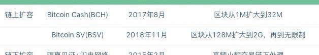 自從上線以來,比特幣網絡的交易速度慢和擁堵問題一直廣受詬病,比特幣社區也于2015年開始探討比特幣的擴容解決方案。社區提出的擴容解決方案核心爭議點在于是否要區塊擴容,即將比特幣區塊大小從當前的1M擴大到8M甚至更高。以比特幣Core團隊為代表的開發者社區和用戶強烈反對區塊擴容,主張以“隔離見證+閃電網絡”的鏈下擴容方式。截止目前,比特幣的擴容方案主要分為鏈上擴容和鏈下擴容兩大類,如下表所示: