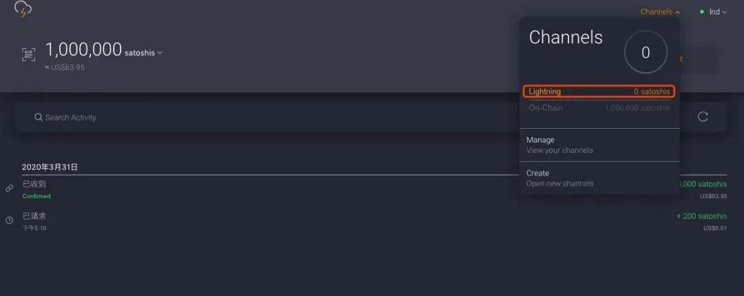 圖12:Zap錢包界面-創建Channel選項