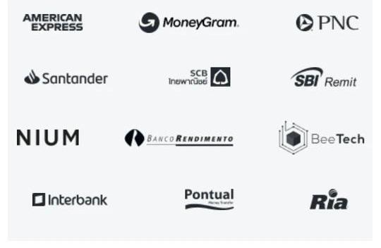 xVia以網關作為中轉,將XRP作為多種法定貨幣之間的全球中間貨幣,是xRapid的加強版。支付方可以先將任意貨幣先轉給網關,再由網關將原貨幣轉換成目標貨幣,支付給收款人。xVia基于API的標準化接口,它允許銀行和其他金融服務提供商在同一個結構框架內進行交互,不必依賴多個支付網絡集成。xVia允許RippleNet中的銀行相互創建支付,并且允許銀行將發票或其他信息附加到其交易中。在信任網關的基礎上,此種方式十分靈活。整體來看,瑞波網絡在銀行現有的基礎設施之上進行整合,來補充并改進傳統的支付系統——去除諸多中心機構環節,利用信任網關進行點對點支付。xCurrent將在跨金融機構之間實現低成本高效率且實時的支付;xRapid則使用無國界貨幣XRP來作為按需流動資金池;xVia則促進了RippleNet參與者之間的整合與通信。但加密貨幣XRP,xRapid、xVia使用過程中可能會涉及到國際監管、合規等問題,xCurrent則沒有這個問題。4.4Ripple與國際金融巨頭積極探索合作低費用、實時清算、較高擴展性引起傳統金融機構和科技公司對瑞波在這類分布式技術的高度重視,國際金融/科技巨頭紛紛與瑞波等公司合作,積極探索可能的市場潛力。據不完全統計,公司已與全球40個國家/地區超過300家銀行和金融客戶建立了合作關系,如三菱東京日聯銀行、巴西布拉德斯科銀行、渣打銀行等。加拿大帝國商業銀行、瑞士瑞銀、西班牙桑坦德銀行、意大利聯合信貸銀行、美國運通等紛紛與瑞波網絡合作進行測試。