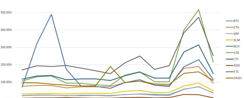 資料來源:CoinMarketCap,TokenMania圖9本周十大資產換手率明細