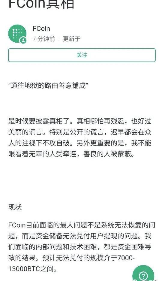 我在FCoin好像還有一些我也不知道是不是已經歸零的山寨幣,當時花了幾千塊錢去fcoin體驗了一下交易挖礦和一些百花齊放的各路山寨,也抱著玩玩的心態,后來fcoin崩盤之后我就沒有再登錄過了,也不知道他們歸零了沒有。其實我覺得,fcoin的窟窿應該不止公布的這么少。畢竟fcoin可不是什么小交易所,好歹也是當年最閃耀的新星,雖然不如當年如日中天,但是擁躉也粉絲也頗多,肯定不是會被幾個億被逼到關門的絕境的小交易所。背后的事情肯定沒有公布的那么簡單,不過反正大家就默認跑路了就行了。交易所其實真正做的其實還是信譽和口碑生意,當人們不再信任你,你怎么努力都無法挽救回來了。不過幣圈老人們都覺著,這算是牛市初期的號角了。