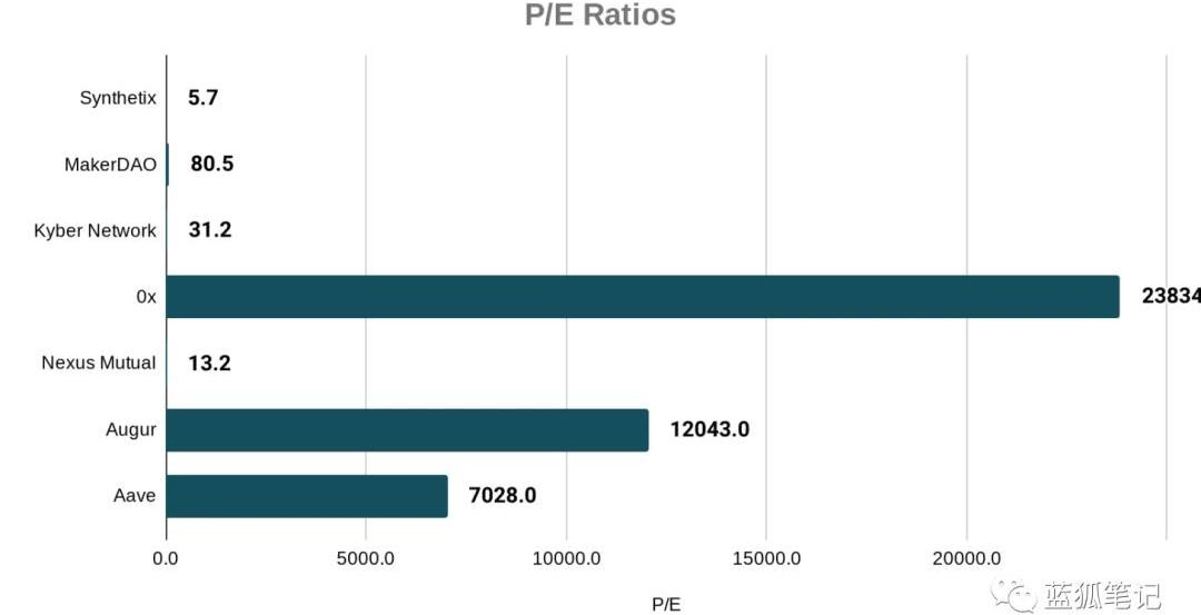 讓我們假設Uniswap決定在未來集成原生代幣。那么,“公允價值”是多少?就流動性市值而言,它會處于什么位置?首先,我們為Uniswap快速設計代幣經濟體系,可以從其交易費用中捕獲價值:為了成為Uniswap的流動性提供商,并有權獲得該協議的現金流,那么,用戶需要持有X數量的UNI代幣。不優雅,但簡單。UNI將代表從Uniswap收取費用的權利。那么,考慮到當前169萬美元收益,Uniswap市值應該多少?觀察其最接近的競爭對手KyberNetwork的市盈率為31,那么,Uniswap代幣化流動市值可以達到5239萬美元。假如說,考慮到Uniswap在過去一年的爆炸性增長,投資者可能認為其代幣的市盈率應該更高一些,那么,讓我們將其市盈率提高至50。以50的市盈率來計算,Uniswap的流動市值將達到8450萬美元,超過Kyber目前的7600萬美元。僅是為了好玩,如果我們將市盈率提高到100。Uniswap的流動市值將達到1.69億美元,使其躋身于其他DeFi協議的級別,如Augur、Synthetix(藍狐筆記:近期Synthetix市值下跌較大,已經降至1.53億美元)結語考慮到這些貨幣協議產生了現金流,并擁有跟傳統資本資產類似的屬性,因此,給DeFi代幣計算市盈率是有意義的。重要的是,DeFi代幣不太可能累積貨幣溢價,因為它們主要推動底層協議,且并不用作為儲備資產或價值存儲。因此,從傳統資本資產的視角看,這樣觀察DeFi代幣似乎很公平。像Synthetix和NexusMutual這樣的代幣,有很低市盈率,表明相對于其市值來說,它的使用量很高。這可能意味著,它們要被整個市場低估,要么對其未來的增長預期不大另一方面,像Augur和0x這樣的代幣具有極高的市盈率,這意味著,相對于它們的市值,這些代幣協議在積累大量的現金流方面正處于艱難時期。似乎加密投資者要么:高估了這些資產,要么對其未來增長擁有極高的預期。無論如何,從市盈率角度看DeFi代幣,可以給投資者更清楚地了解這些協議的使用量以及未來潛在的投資機會。同樣顯而易見的是,這個行業是新興行業。就現金流方面,跟許可的加密銀行競爭,還有很長的路要走,而跟傳統公司競爭的話,差距就更遠了。