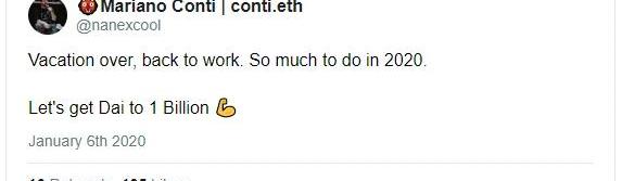 MakerDAO的智能合約負責人MarioConti的目標是,截至2020年,DAI的流通量要達到10億。