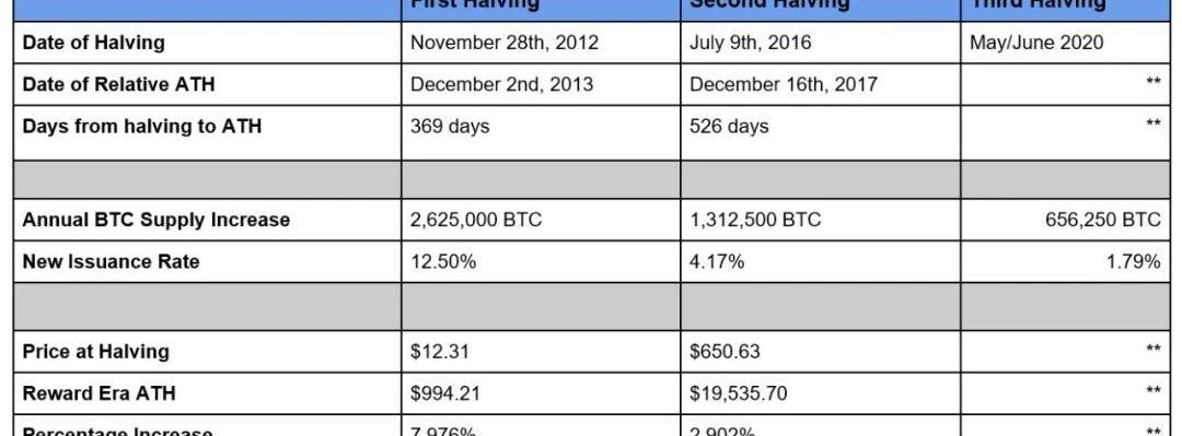 根據比特幣的歷史數據,減半行情是比特幣市值飆升的重要推動因素,可稱之為比特幣的“市值加速器”。從S&F指數可知,比特幣減半將顯著提升其稀缺性,也會極大可能的促進比特幣市值增長。截止目前,比特幣已經先后進行過2次減半,分別在2012年11月和2016年7月,比特幣區塊獎勵由最初的50BTC減至當前的12.5BTC,分別收獲了7976%和2902%的價格漲幅。預計比特幣的第三次減半將在區塊高度630000,此次減半后區塊獎勵將會縮減至6.25BTC。