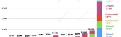 如果說2018年是DeFi的萌芽初期,那么過去的2019年可以稱的上是DeFi元年。這一年,DeFi領域千帆競發,百花齊放。DeFi從星星之火燎原成了一個整個區塊鏈行業都在關注且給予極大發展想象空間的新興領域。大家都產生了一個共識:數字資產市場前十年發展靠交易所,后十年發展靠DeFi。2019年6月份,DAppTotal出品了《2019上半年DeFi行業研究報告》,并重點圍繞DeFi三駕馬車:穩定幣、借貸市場、去中心化交易所三大市場進行了系統分析。2020年初,我們將繼續圍繞DeFi三駕馬車進行縱論分析,并以行業頭部應用MakerDAO過去一年的表現為重點數據分析研究對象,帶大家一同領略過去一年DeFi行業的發展現狀以及未來DeFi可能演變的新趨勢。穩定幣市場:據DAppTotal數據顯示,截至12月31日,穩定幣總發行量為58.27億枚,較2018年底的27.02億枚,共計新增發31.24億枚。在總的穩定幣市場份額中,USDT發行量為47.6億美元,占比81.7%,新興穩定幣市場發行總量為10.67億美元,占比18.3%。整體而言,2019年穩定幣市場取得了快速的增長,USDT全網共計新增發28.57億枚,較2018年增長了150%。值得一提的是,過去一年,USDT基本完成了從OMNI網絡向ERC-20網絡的轉移,截至目前,ERC20-USDT不僅發行量趕超OMNI-USDT,每天日交易額和交易頻次也都大幅超出。借貸市場:據DAppTotal數據顯示,截至12月31日,DeFi項目整體鎖倉價值為8.74億美元,其中MakerDAO鎖倉價值為3.1美億元,占比35.35%,EOSREX鎖倉價值為1.95億美元,占比22.33%,Edgeware鎖倉價值為1億美元,占比11.50%,Compound,Synthetix、dYdX、Nuo等其他DeFi類應用共占比30.82%。整體而言,2019年,DeFi借貸市場同樣取得了快速的發展:行業龍頭項目MakerDAO的ETH鎖倉量從年初的187萬枚,增長到年末的235萬枚,增長了25.66%,進一步鞏固了行業地位;Compound鎖倉為8,418萬美元,較年初的1,459萬美元,增加了476.97%。DAI當之無愧成為DeFi借貸市場流通之王,USDC則成為新興穩定幣市場中增長最為迅速的新興穩定穩定幣種。DEX市場:據DAppTotal數據顯示,截至12月31日,2019年DEX市場年度累積交易額達20.26億美元,其中,1月份交易總額為7,763萬美元,12月份增長至1.19億美元,增長了54.25%。整體而言,過去一年,去中心化交易所(DEX)的整體市場較為平穩,DEX在小幣種上線,DeFi理財等多個使用場景中展開了探索嘗試,但相比中心化交易所,其市場流通性還有待提高。1.簡介