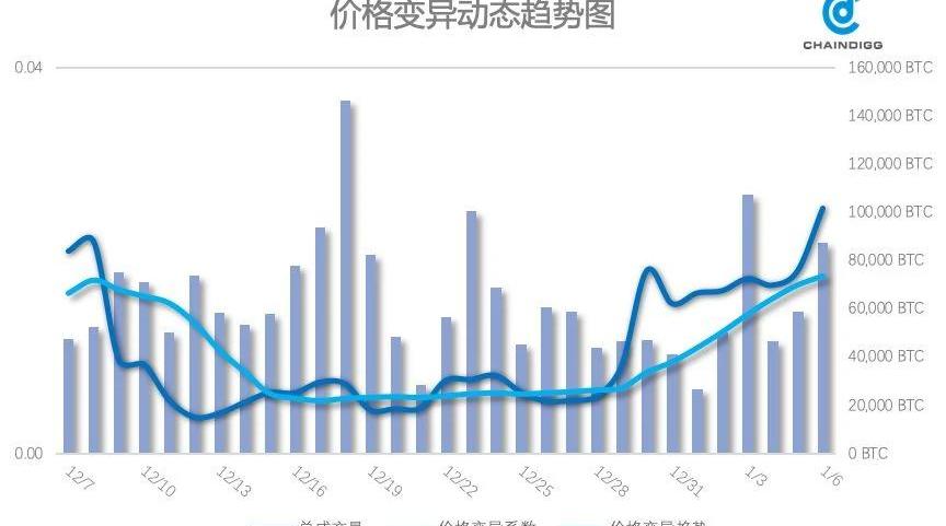 XRP/HKD-3.87%報告要點從市場交易數據來看,BTC平均價格走勢呈現量價齊升格局。價格變異系數向上抬升不斷走高,場內“搬磚”交易激活;換手率在平淡中走出高潮,市場交易活躍;五大交易所的充提幣地址數據從異常狀態開始回歸常態,市場幣流開始趨穩。整體上看,市場交易動能開始恢復,BTC平均價格開啟反彈行情。從鏈上活躍性數據來看,上周鏈上新增地址數和單期活躍地址數結束了前期下滑態勢開始企穩,但還未出現同步增長跡象,單項活躍地址平均交易數量出現短暫波動后回歸趨勢,大小額財富地址數在趨勢都表現平穩。整體來看,鏈上交易活躍度有所改善,但還沒出現逆轉態勢。從技術穩定性上看,上周全網平均算力在波動中持續走高,交易手續費開始反轉,礦工積極性正在上升。結論:上周信心指數三線同步反轉向上,短期信心指數已經突破50線,遠期信心指數也即將形成突破。整體上,市場信心正在擺脫前期疲軟狀態,市場長期信心仍需要進一步合力。這波BTC平均價格的反彈是否能擺脫底部“引力”形成向上趨勢,還有待觀察,從目前各項指標表現來看,多個指標反轉跡象不明顯,長期市場信心還顯不足等,因此,投資策略上以波段操作為主,控制好倉位和成本。一、市場交易數據截止1月5日五大主流交易所BTC的平均價格為7719.77USDT,較前一周上漲了6.87%。BTC平均價格走勢呈現量價齊升格局。價格變異系數向上抬升不斷走高,場內“搬磚”交易激活;換手率在平淡中走出高潮,市場交易活躍;五大交易所的充提幣地址數據從異常狀態開始回歸常態,市場幣流開始趨穩。整體上看,市場交易動能開始恢復,BTC平均價格開啟反彈行情。