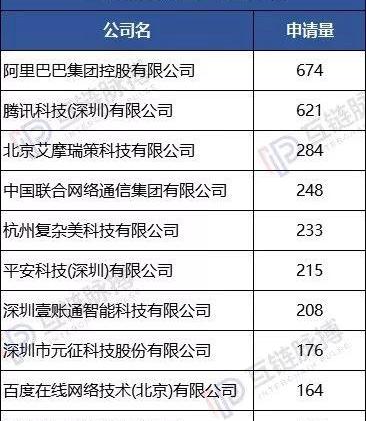 阿里巴巴在海外積極布局區塊鏈專利,在國內的申請量也已經連續多年排名第一。根據innojoy的統計,迄今,阿里巴巴集團在國內申請的區塊鏈專利量為674。如果加上海外的,阿里巴巴集團是全球第一個區塊鏈專利申請量破千的公司。騰訊以621件排名第二。瑞測科技、中國聯通、復雜美、平安科技、壹賬通專利申請量都超過了200件,排名3-7位。值得注意的是,平安科技和壹賬通都隸屬于中國平安,兩個公司合計423件專利。美國區塊鏈相關專利申請量第一個的公司IBM放在中國只能排到第七。150件專利是中國區塊鏈專利前十強的門檻。網心科技以156件晉身前十,在它不遠處還有百度及元征科技。這一數據在美國是僅次于IBM的存在。