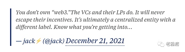 甚至Jack Dorsey和Elon Musk最近也對Web3和區塊鏈提出了批評。Dorsey在12月20日的推文中隱約在嘲諷風險投資的介入。