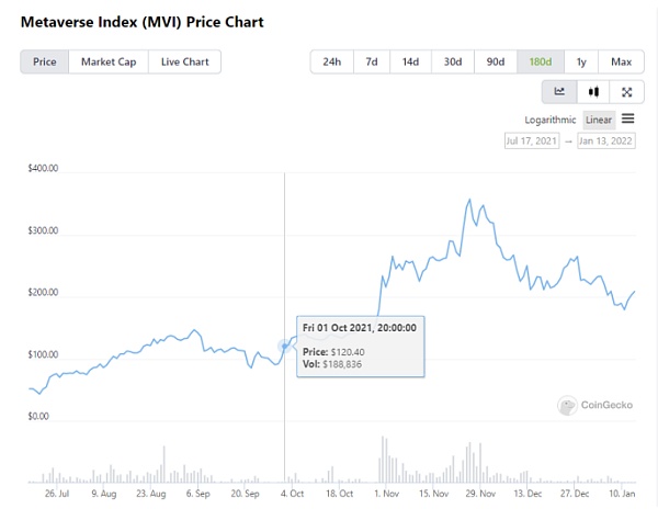 MVI是由Index Coop創建的一籃子元宇宙代幣,從10月1日到2021年12月31日,在該季度結束時上漲了88%,而在11月底達到了197%的峰值。