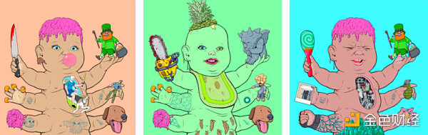 包含9,999枚由888個特征生成的Toddlerpillar NFT,其中包括60個極其稀有NFT。該項目延續了藝術家和畫廊主Jon Beinart Toddlerpillar娃娃雕塑20年的歷史,同時注入了藝術家Tim Molloy的新迷幻因素。 ?Toddlerpillar持有者將加入一個多維藝術集體,可獲得全球聚會、vinyls收藏品和獨家空投。(這畫風實在沒落在我審美點上,不過了解Jon Beinart和Tim Molloy更多作品后,這真的是小巫見大巫了。)