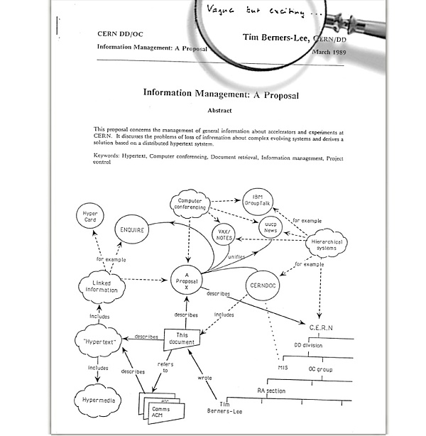 當年Tim Berners-Lee所提交的提案,圖片來自于歐洲粒子物理研究所(CERN)