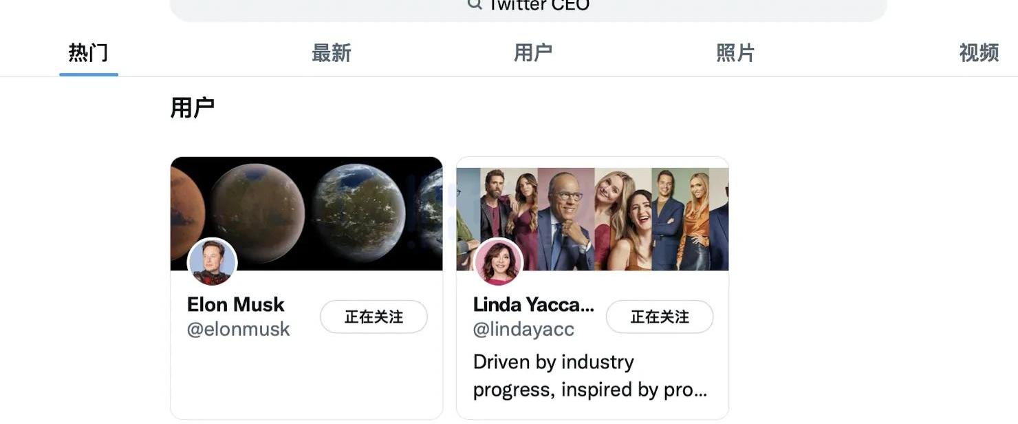 若是在twitter公開搜索「TwitterCEO」,Linda的賬號赫然在列,與馬斯克并排,成為twitter新任CEO似乎板上釘釘?