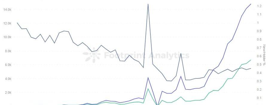 StepN在BSC上線后受到極大關注,相比Solana上更快的回款周期更獲得用戶關注。Token持有者也在不斷上升,每日新增的持有者均在千人以上。