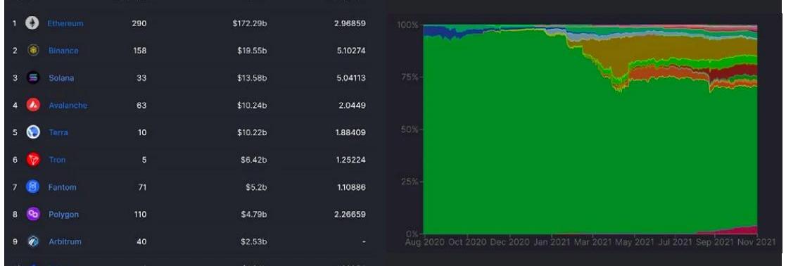 我相信我們會生活在一個多鏈世界中,而以太坊的EVM幾乎肯定會成為未來數十年的重要標準之一。在接下來的幾節中,我將介紹在爭奪Layer1份額的競賽中其他早期領導者,會有專門介紹Solana、CosmosIBC、Polkadot和Terra的部分。
