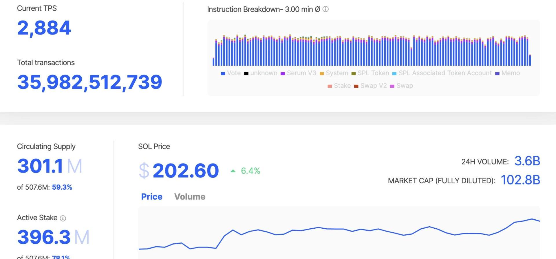 Solana平臺代幣SOL,總供給量4.88億枚。當前單價200多美元,市值加密市場全球第5。
