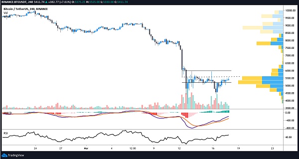截至發稿時,比特幣繼續在5050美元至5400美元的區間內波動,在5500美元位置遇到阻力。1小時和4小時的時間框架顯示了一個更高低點的走勢,一個積極的信號是比特幣似乎即將把5400美元的位置變成支撐位。