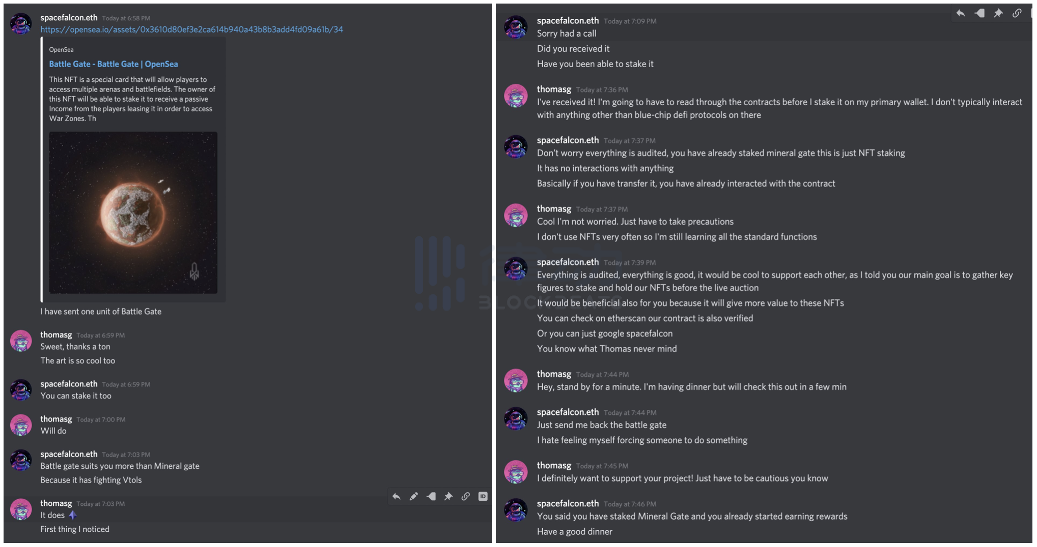 那 SpaceFalcon 又是怎么回事?據我所知,這是 Solana 上的一個真實項目,但真正的項目使用的是 spacefalcon.io,而騙子們用的是“.com”。所以之前一直與我互動的「Linh」可能只是真 Linh 本人的冒頂者。