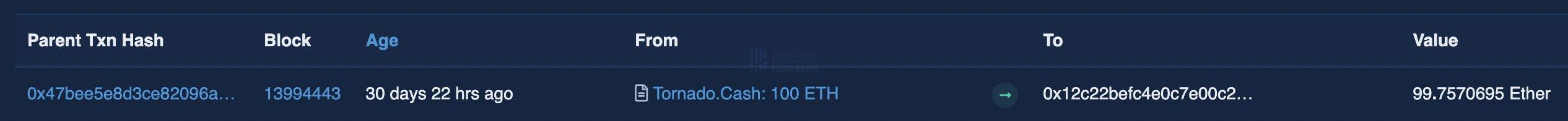 我最終在 etherscan 找到了他們的資金來源——100 枚 ETH 的 Tornado Cash 存款。這些家伙資金雄厚,而且超級精明。