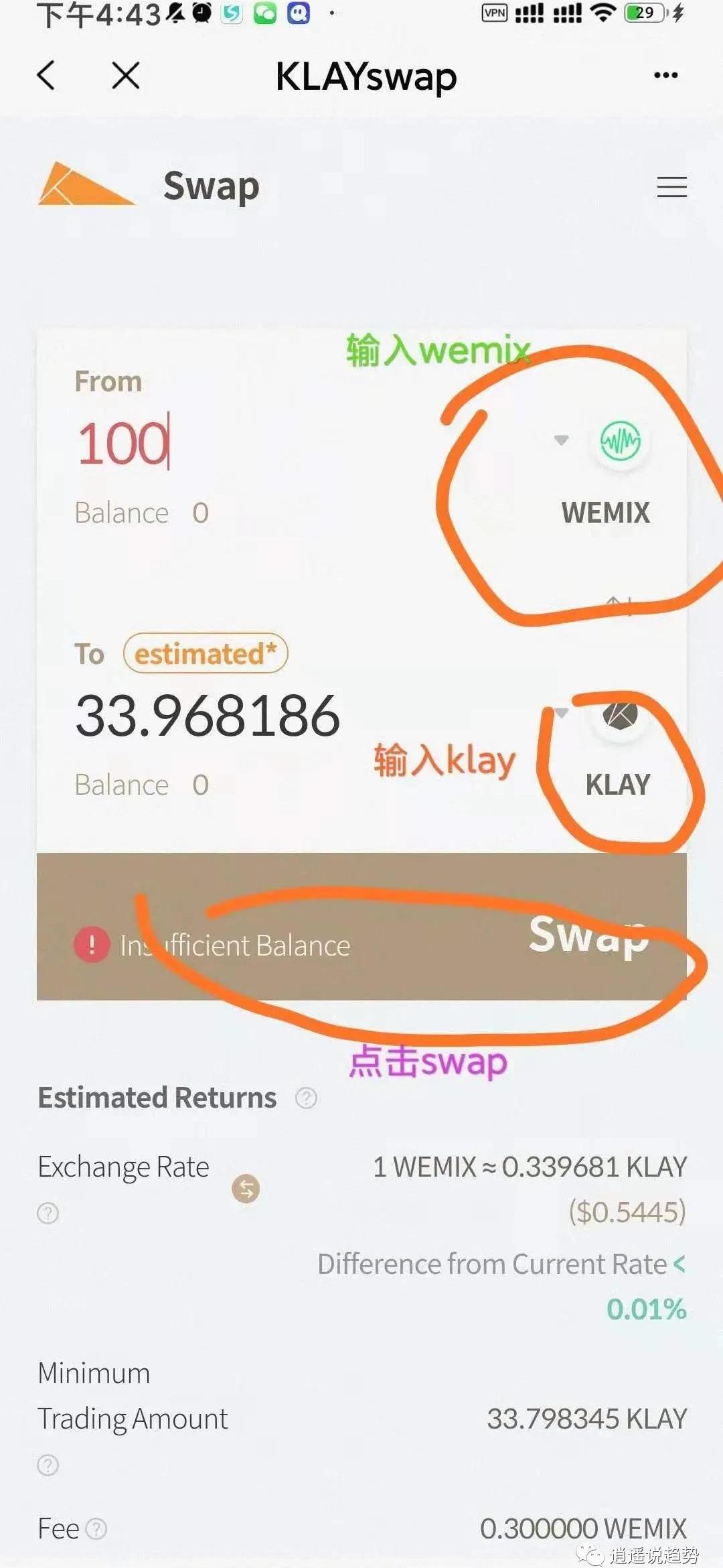 6.將wemix兌換成klay,然后將klay轉到幣安交易所換成usdt。