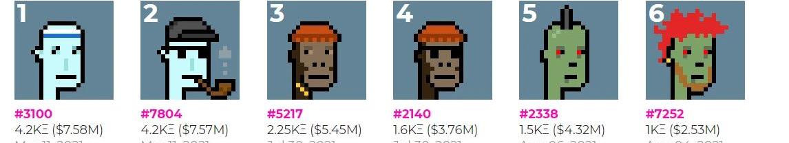 今年3月11日,CryptoPunk#3100和#7804均以4200ETH的價格成交。該成交價按照目前ETH的價格計算,約合1290萬美元。
