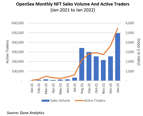 NFT 銷量在 2022 年開局強勁,1 月份銷量創下歷史新高。這樣的數量將吸引更多的玩家。