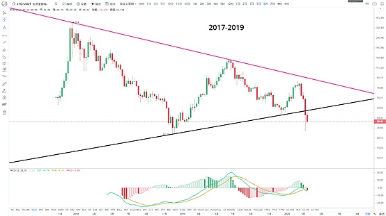 BTC歷史上常有不破不立之說,不少大行情的起點經常以跌破此前的重要趨勢線形成階段新低作為起點,走出戲劇性的反轉行情。因為,跌破此前的低點意味著估值來到罕見的低位,本身就具有相當程度的投資價值。另一方面,跌破之后往往會讓一部分投資者陷入恐慌絕望,低點失守之后這些最后的空頭割肉出逃、繳械投降,意味著最后做空力量的宣泄和衰竭,孕育著否極泰來的新希望。因此,跌破重要趨勢線對涉市未深的投資者有強烈的心理沖擊,但對于資深投資者來說,卻無異于發出低位建倉的集結號。