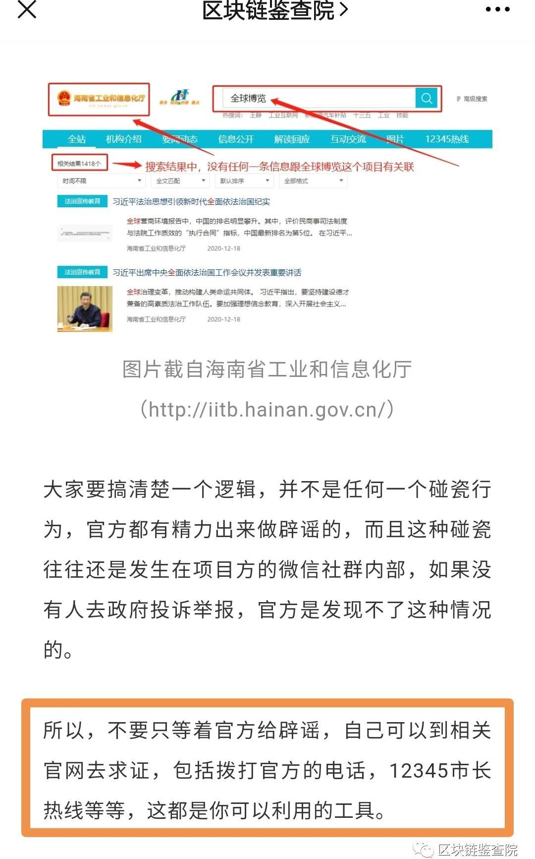 果然,有投資人在1月6日主動給海南省工信廳發信息核實,并且得到了明確的辟謠。“我廳從未以任何形式控股企業,且從未推薦全球博覽項目。”