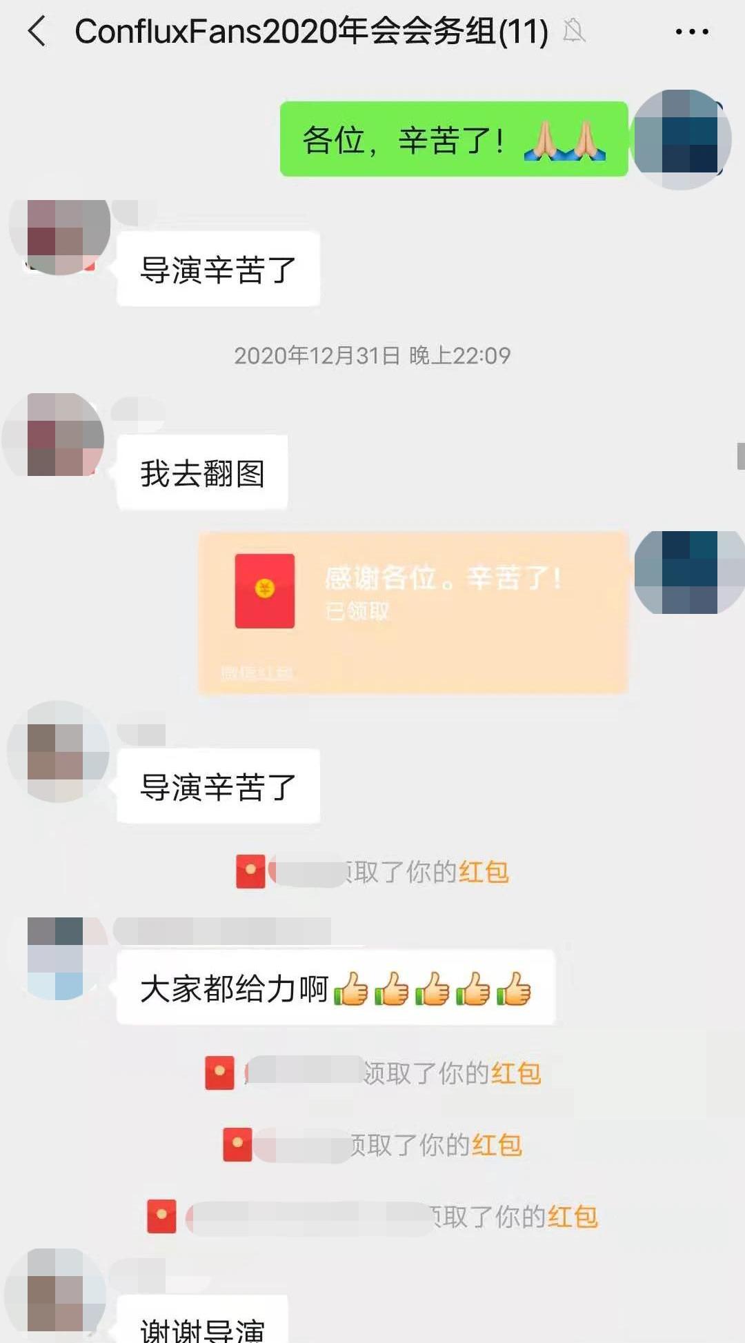 縱然社群成員都心滿意足,導演觀自在還是覺得不夠完美,因為——在搶紅包環節,出現了一個大烏龍。原計劃在晚會過程中會發三輪紅包,預計1000+CFX。但Whoops加密紅包有一個bug,系統由于數據類型精度的問題,默認為只要是大于10CFX的紅包,就會被限定為9.2234CFX。最后統計的時候,才發現整個年會發出去的紅包只有44CFX。好好的跨年晚會,居然為生態項目做了一輪測試,還發現了隱藏的漏洞,因緣際會,“有位會務組的小姐姐調侃,這是史上最節省的年會,沒有之一”,觀自在笑道。被問及以后還會不會為社區主持舉辦線上晚會,觀自在自信滿滿,"我一開始發愿就發了10年的愿,就陪著Conflux至少走10年"。自動化專業的導演愛寫作