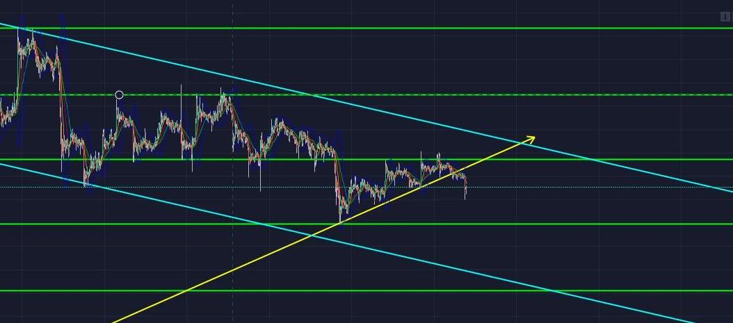 BCH的下跌幅度還是比較強勢的,222這個小支撐成功破位,但是底部219.50沒有打破,一小時來看行情和我之前所說到的一樣,在下行通道內到達頂部無力隨后要進行一波下探,行情整體來看下跌空間還很大,整體在214附近看能否支撐,但還是要小心反彈力度,若能破位226.20我們就要改變思維了,順勢進多,目前行情雖向下一波但是反彈力度還是比較大,日線的話也是空勢發展,所以我們高拋低吸操作。