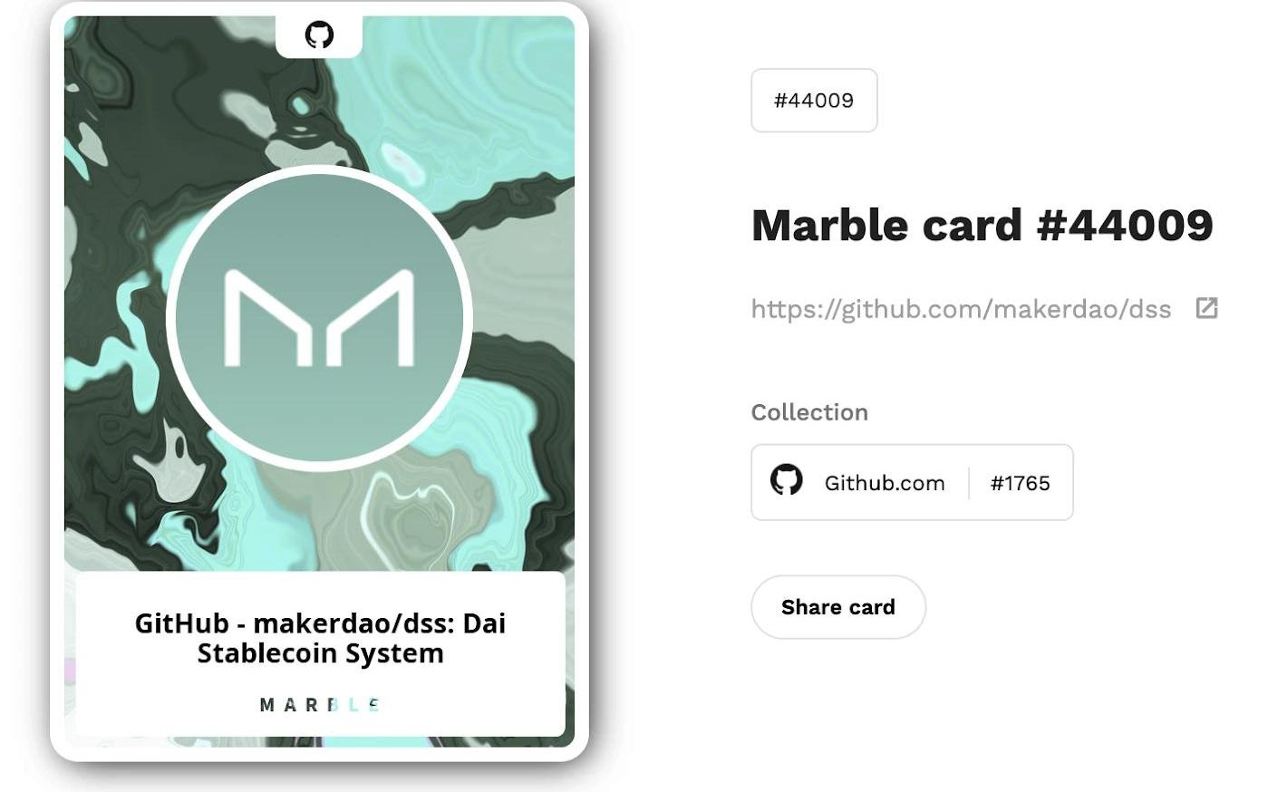 MarbleCards是針對加密社區的一款有趣的紙牌游戲。玩家可將任何網頁嵌入一張可收集的NFT卡牌中,每張卡牌獨一無二且可以公開拍賣,URL只能被嵌入一次并由一個人擁有。
