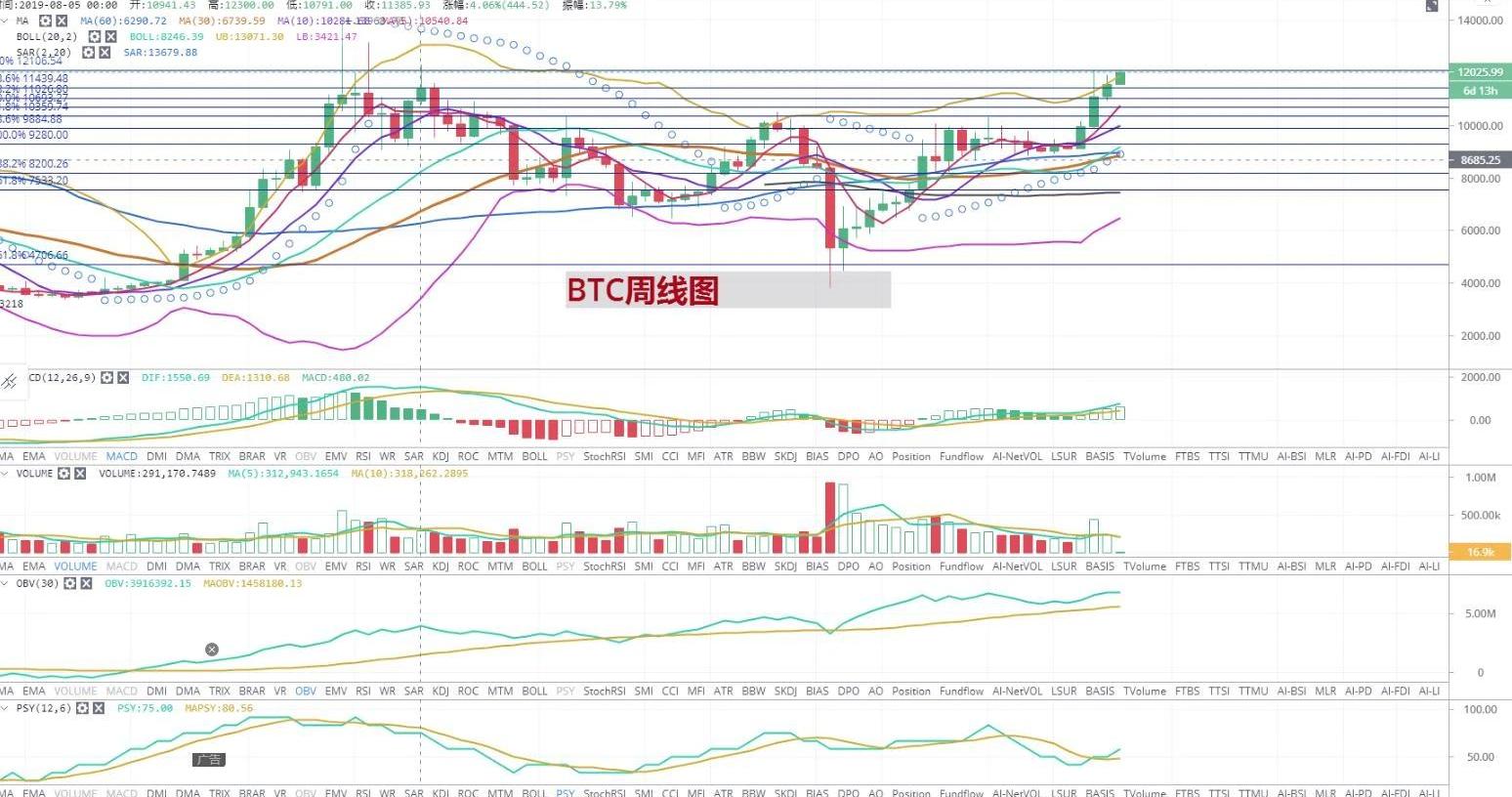 持幣者從周線圖上看,今天是周一,目前比特幣行情處于周線上軌附近,有些雙重危險的意思。在持幣者日線圖中,目前比特幣行情處于瘋狂上漲的階段,在早間2點行情觸底反彈,幣價急劇拉升,直接逼近之前高點12106一線。