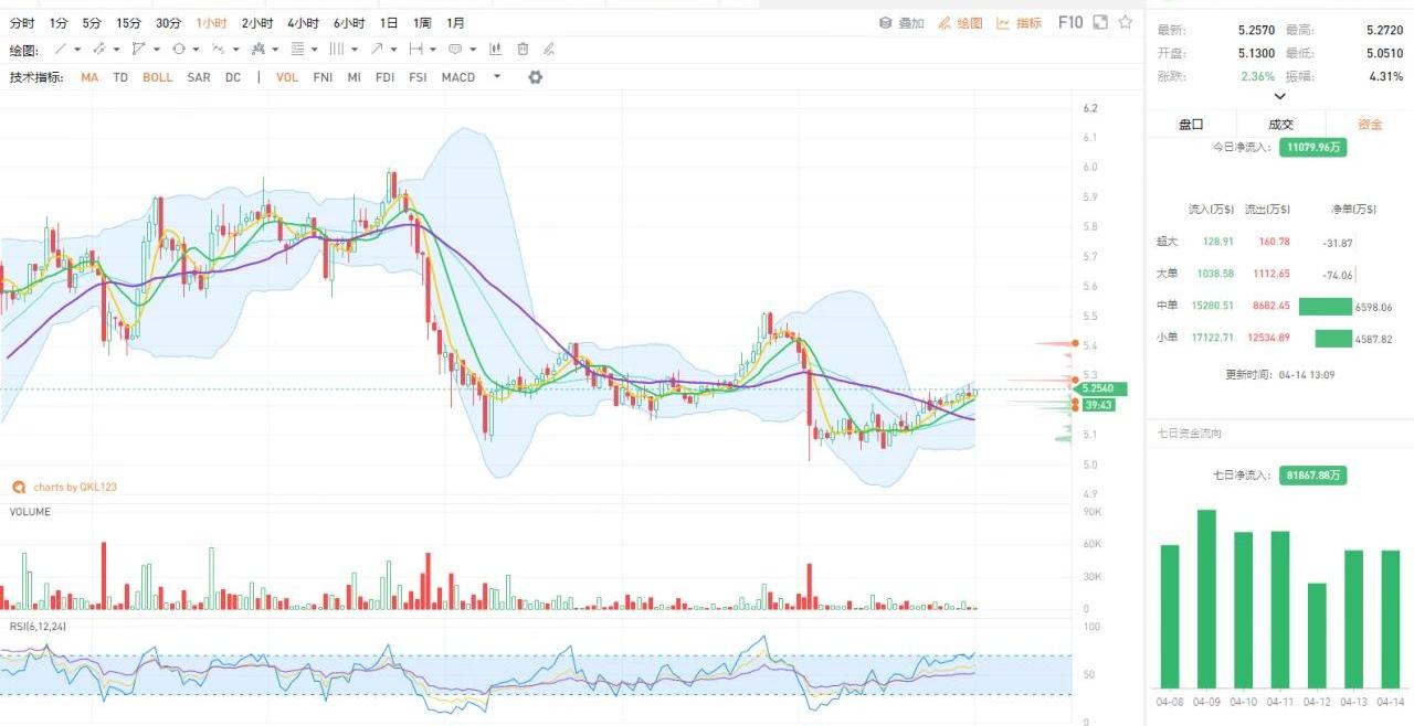 ETC站上前日震蕩區間,資金流以小單流入為主,縮量反彈上行,短時不確定性較大。