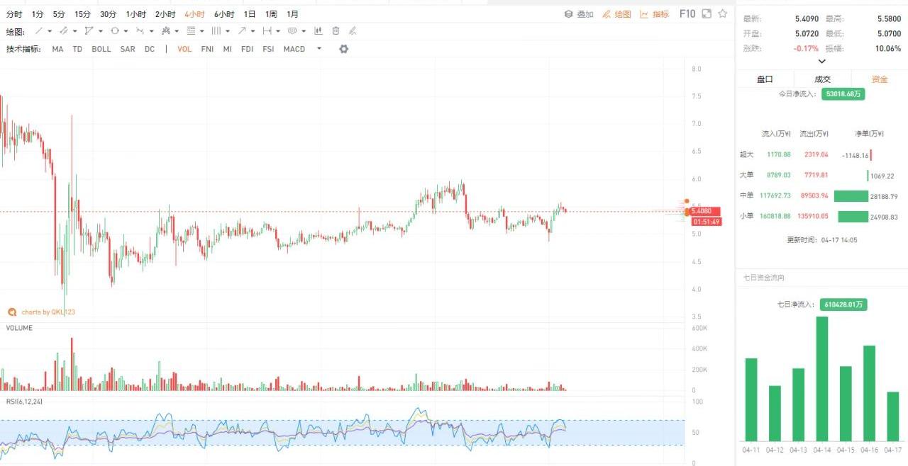 ETC和EOS類似,上行的量能并不明顯,最高觸及5.6美元回落,短時下探風險較大。