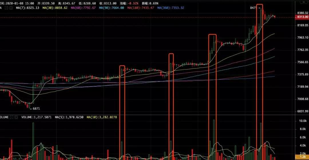 僅從小時線級別,BTC大盤暴力拉升的時間節點來看,都發生在北京時間早上6-10點間,國人早起的時間。拉盤的時間點選擇上,充滿著陰謀的味道,像是刻意給人看的,從而引起大家的追漲情緒。